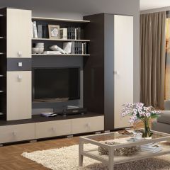 Современный дизайн стенки придает ей особую элегантность. Несомненно, стенка привлечет к себе внимание ваших гостей и станет украшением гостиной. Классические строгие линии, сочетание открытых и закрытых отделов. Удобные ящики. Шкаф платяной.