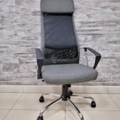 Кресло Barneo K-116 для персонала серая ткань, черная сетка